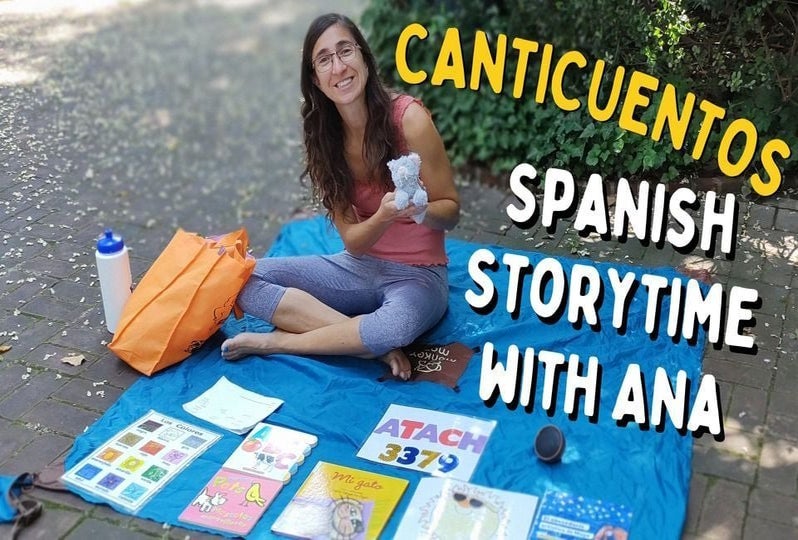 Join local storyteller Ana Atach for Canticuentos! Come to explore songs & stories in Spanish, with a new animal theme each week! Bring your own animal toy to play along (not required). Followed by time for free play and socializing with Ms. Grace.