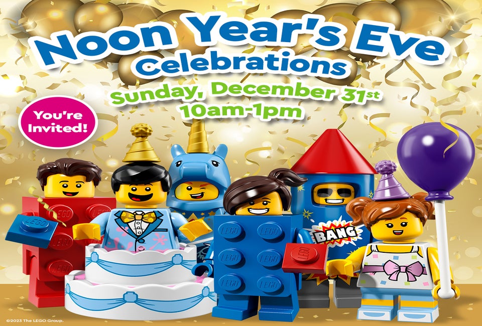 Be sure to arrive before Noon to celebrate with a LEGO® Ball Drop in MINILAND Philadelphia! Grab a complimentary noise maker (*while supplies last*) and help us bring in the new year with a glass of sparkling apple cider.