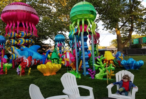 We got a sneak peek of the festival just before it opened. My toddler seemed unsure of what to expect, but was immediately interested in the colorful lanterns and exhibits that fill the park- and it wasn't even dark yet! My son's favorite was the 200-foot-long dragon pictured above- even though it was "a little bit scary."