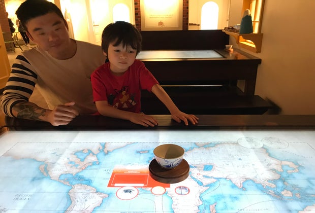 Our favorite space was probably the Three Tun Tavern, which has a beautiful interactive map on each table. The map allows you to take items from the Old World and see how they were transported to the New World. Reproduction newspapers and objects definitely give you that 1770s vibe, and it also does a great job of demonstrating how important taverns were on a social level.