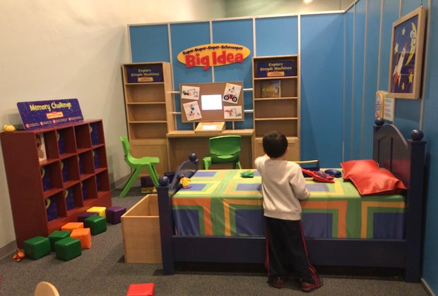 This was my favorite room. This bedroom looked exactly like Sid's room in the show. It has a memory challenge, a catapult, and questions for curious kids. Sid’s room is space themed and completely adorable. There is a touch-screen at Sid’s Desk, also known as the “Super-Duper-Ooper-Schmooper Big Idea,” that helps kids explore scientific principles further. Plus your little one can see if they are as big as Sid or as small as Zeke (Sid’s little brother).