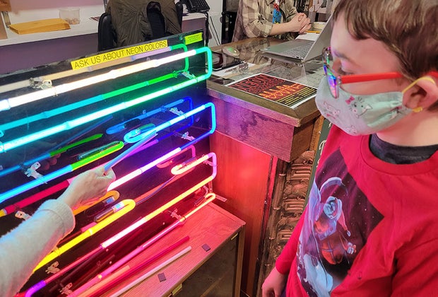 Located in Kensington's NextFab building, the Neon Museum opened in 2021, inhabiting a large white-walled space right next to jewelry and textile studios, metalworkers, woodworkers, and a bicycle shop. There's nothing else like it in the city, making it a favorite entry on our list of 10 Unique and Unusual Museums in Philadelphia for Teens and Tweens. Read on for everything to see and do at the Neon Museum of Philadelphia, and find more ways to dive into Philly's art and science scenes in our Guide to Philly Museums for Kids.