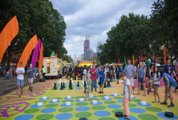 Parks on Tap is a traveling beer garden, switching its location each week from April to September. Visitors can relax on hammocks or lawn chairs, play games, and sip on a brew (or glass of wine or non-alcoholic beverage), plus grab something eat from the food trucks onsite. In June, Parks on Tap will be at Schuylkill Banks and Columbia Square and will kick off July at the Shofusu Japanese Garden. Check out their schedule for more details. An extra perk of Parks on Tap is that it's dog friendly so the entire family can come hang out! In a related initiative, Barks on Tap rotates through several dog runs in the city for some thirst-quenching quality time with your pup.
