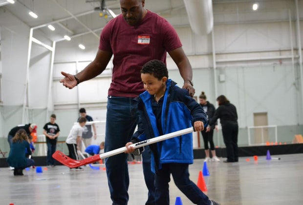 Kids participate in floor hockey. Photo courtesy of Special Olympics Pennsylvania.