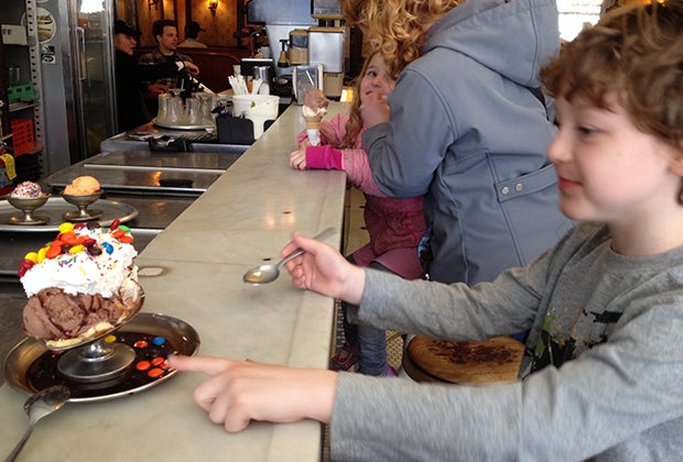 Eddie's Sweet Shop serves up over-the-top sundaes in an old-school ice cream parlor setting. Photo by barrrry joseph via Flickr.