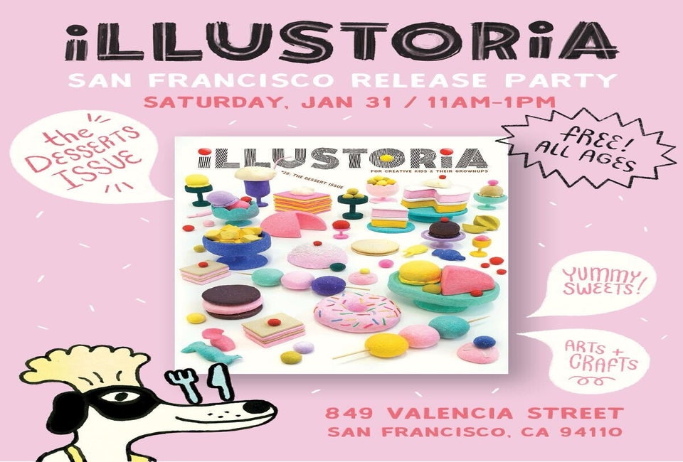 Join Illustoria Magazine for their Issue 28: DESSERTS Release Party. There will be dessert-themed crafts and activities led by Jade Howe, Illustoria issues and subscriptions for sale, and free cupcakes generously donated by Mission Minis.