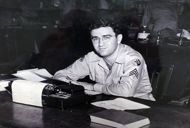 Jerry Siegel with his typewriter, ca. 1943. Collection of Steve Soboroff/Courtesy New-York Historical Society.