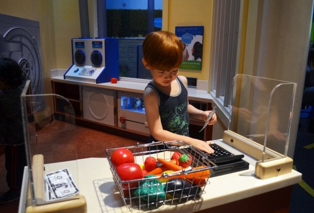 When you enter Fairytale Island, you know that your child is entering an epic play zone. The main play space offers a giant ball pit, two-level Fairytale Island train, swings, crawl spaces, slides, little cars, and a trampoline—phew, hope I got it all. There are additional imaginary play and more toys set up in separate areas. Read on for our full review.