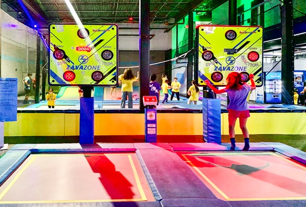 The equipment at ZavaZone Trampoline Park is designed for ages 5 and up. Tickets can be purchased online for one hour, 90 minutes, two hours, three hours, or even unlimited play. Admission includes access to every attraction (except a couple of arcade-style games). All participants must wear jump socks with grips on the bottom, which can be brought from home or purchased on site. Adults accompanying kids do not need to pay if they're not participating in any activities. To save time, fill out an online waiver ahead of time for every visitor.