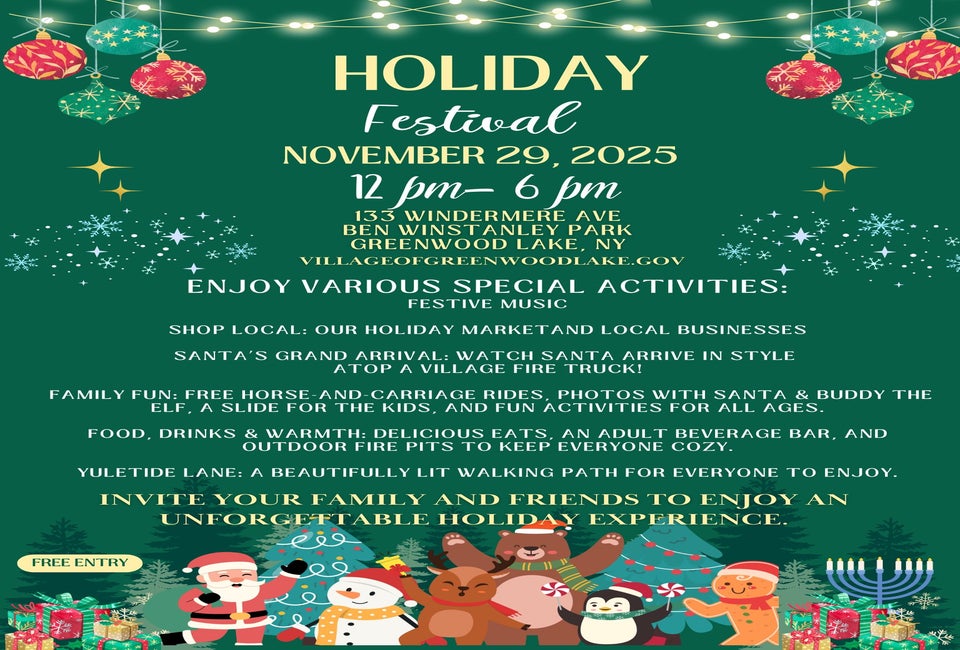 This outdoor holiday festival features live music, free horse-and-carriage rides, pictures with Santa and Buddy the Elf, a slide for the kids, and a Christmas tree lighting by Santa himself.