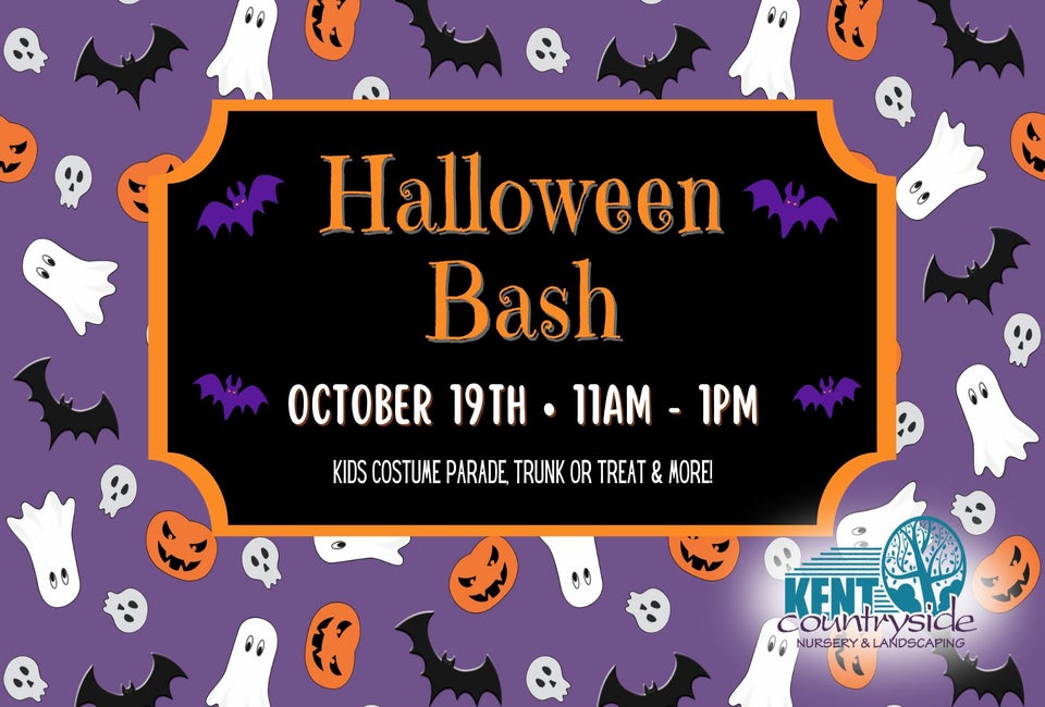 Activities at Kent Countryside Nursery's Halloween Bash include a kids' costume parade, pumpkin painting, trunk or treat by local businesses, cider & donuts, and more.