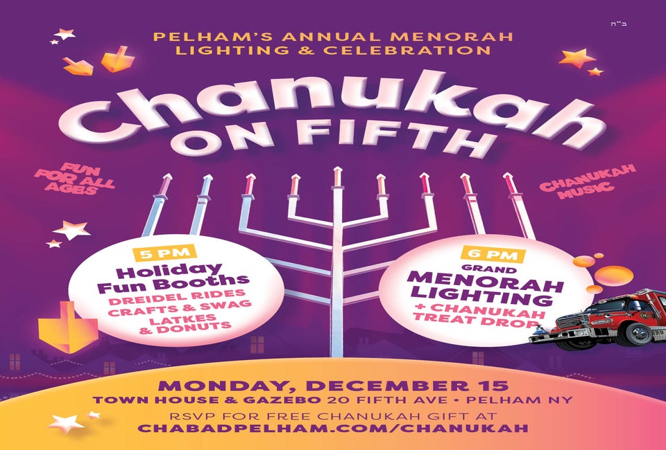 Join Chabad Pelham for a wonderful Chanukah experience! Enjoy fun Chanukah booths followed by a grand Menorah lighting and treat drop.