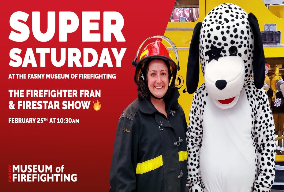 Meet Firefighter Fran and her friend Firestar the Dalmatian, as they present an interactive show on fire safety. The show wraps up with a musical puppet show that will have the whole family excited about fire safety and prevention. After the show, meet and greet Firestar, and pose for a picture. All children will have the opportunity to make a fun fire safety craft with Firefighter Fran and Firestar.