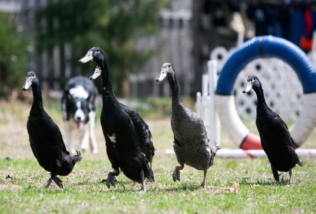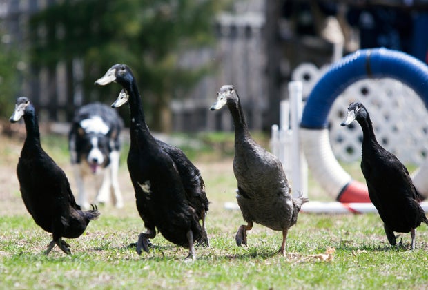 The herding skills of these border collies put any parent to shame.