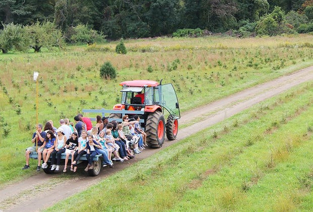 Enjoy a tractor ride on the grounds of Wilkens Fruit & Fir Farm. Photo courtesy of the farm