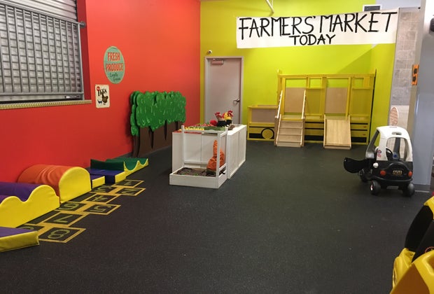 Poughkidsie, located (naturally) in Poughkeepsie, is segmented into two areas. The right side features what’s known as The Village—a pretend town with a kitchen, bank, doctor’s office, farm and more. The left side contains the Create Workspace, an art studio with a dizzying amount of supplies: paints, beads, stickers, tiles, pom poms, decoupage, glitter, dry noodles, googly eyes—you name it. Kids choose an art project and are allowed to use any of the supplies they wish.