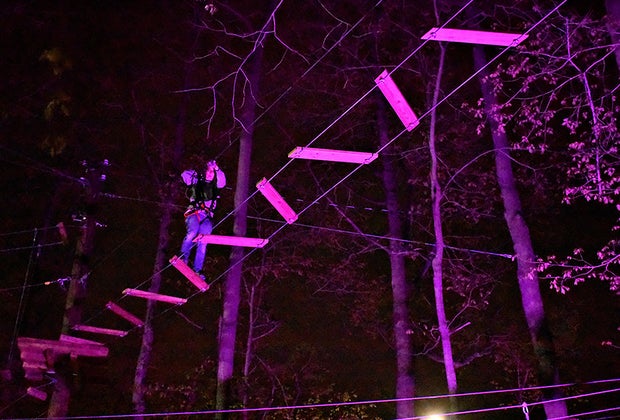 Once monthly through October, the park offers its Glow in the Park event, when glow-in-the-dark bracelets and face paint are provided to participants during nighttime climbs.