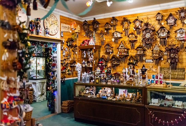Cuckoo clocks and more hand-crafted wooden gifts are sold at Hickory Dickory Dock in Nyack.